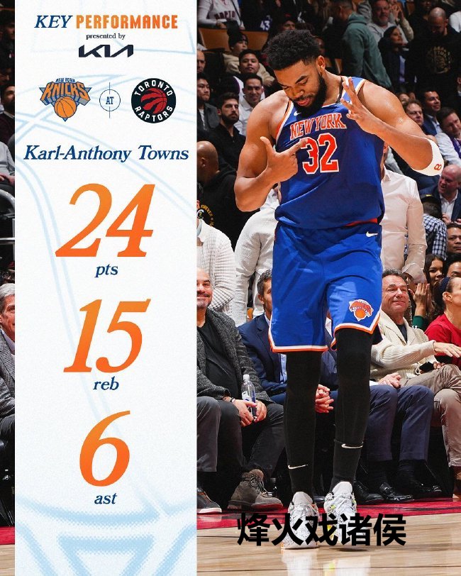 尼克斯(15-9):唐斯24分15篮板6助攻、布里奇斯23分3篮板3助攻、布伦森20分4篮板11助攻、阿努诺比14分4篮板3助攻3盖帽、哈特10分4篮板3助攻